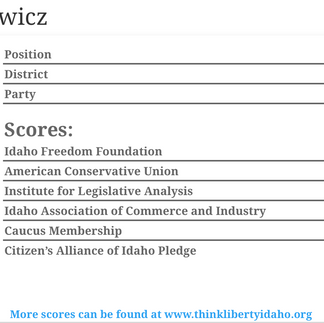 To look at the voting records of our Idaho State Senators and Representatives go to - https://thinklibertyidaho.org/legislator-scores/